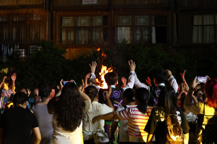 大学生带来的青春活力与侗寨保存的古老智慧相互碰撞、彼此滋养。研学实践队邓佳浩同学感叹道:“手拉手跳舞时,我真正感受到了什么是‘像石榴籽一样紧紧抱在一起’的民族团结情谊。”这次篝火晚会既展现了本土文化根脉的深厚自信,也洋溢着年轻一代尊重、理解民族传统文化的开放姿态,生动诠释文化自信正是在一代代人的亲手实践与情感共鸣方能获得蓬勃的生命力。