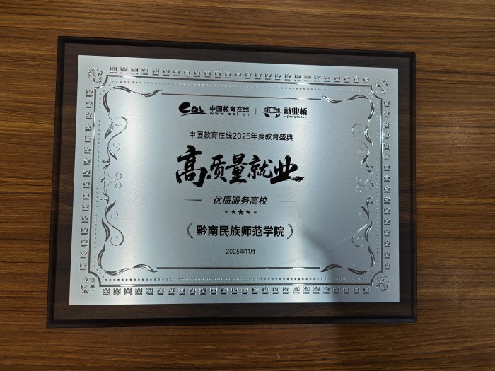 为深入贯彻党中央、国务院关于促进高校毕业生等青年就业创业的决策部署,落实《人力资源社会保障部 教育部 财政部关于做好2025年高校毕业生等青年就业工作的通知》等最新政策精神,挖掘和推广就业工作典型。中国教育在线·就业桥举办了“高质量就业”2025年度教育盛典活动,表彰高校就业工作数智化转型,创新实践的优秀案例,对推动高校就业跨越式发展,汇聚创新动力的榜样单位进行推广。黔南民族师范学院将以此为力量源泉,探索就业发展的创新事迹,分享就业改革的有益经验,为高校毕业生高质量就业发展提供动力引领。