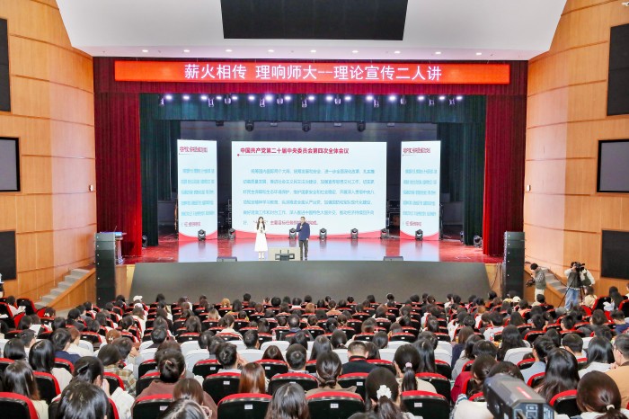 两位宣讲人还将党的二十届四中全会提出的“加快高水平科技自立自强”“一体推进教育科技人才发展”等部署,与学校第五次党代会确立的“奋力建成教师教育优势突出的区域高水平大学”目标紧密衔接。通过详实的成果数据,展现了学校在人才培养、科研创新等方面的突破,彰显了以“五大行动”服务国家和区域发展的坚定步伐。