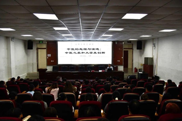 讲座上,徐路教授以“中医起源的多元视角”切入,带领师生追溯中医文化的千年脉络。他结合《淮南子》《史记》等典籍,阐释了中医“源于圣人”“源于巫医”“源于动物本能”的三大起源说,并沿着历史脉络,系统梳理了中医从商周到清代的发展历程。他特别强调,中医并非“守旧”的传统医学,而是在历史中不断创新的学科,始终兼具人文底蕴与实践智慧。