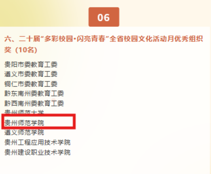 贵州师范学院在第二十届“多彩校园·闪亮青春”全省校园文化月中喜获12项大奖