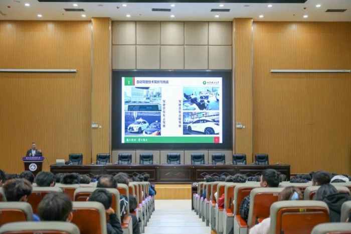 在技术架构方面,专家详细解读了“三横两纵”技术体系,包括环境感知、智能决策、控制执行等核心环节,并深入介绍了V2X车联网、高精度地图与定位、电子电气架构等关键技术,使师生对智能汽车的“大脑”与“神经”系统有了更清晰的认识。