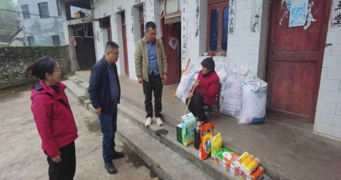 随后,学校教师一行走访慰问6户困难群众,为他们送去米、油、面、纸等生活物资。通过与群众面对面交流,详细了解他们的生活状况,将党组织的关怀落到实处,切实提升村民的幸福感与获得感。