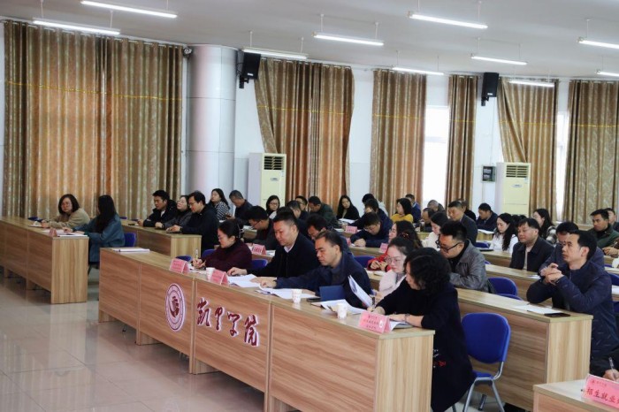 校领导、相关工作部门负责人、各二级学院党政负责人、分管就业工作副书记、学生科科长(负责人)、全体2026届毕业班班主任(辅导员),黔东南民族职业技术学院、贵州电子信息职业技术学院、铜仁幼儿师范高等专科学校3个联合培养点相关负责同志,以及凯里学院招生就业处全体工作人员参会。