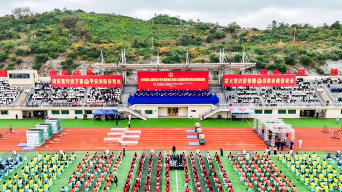 贵阳市贵安新区的26所高校师生代表、新区安委会成员单位、消防安全重点单位的相关负责人等千余人到场观摩。