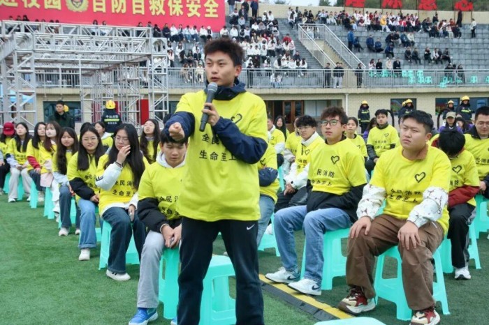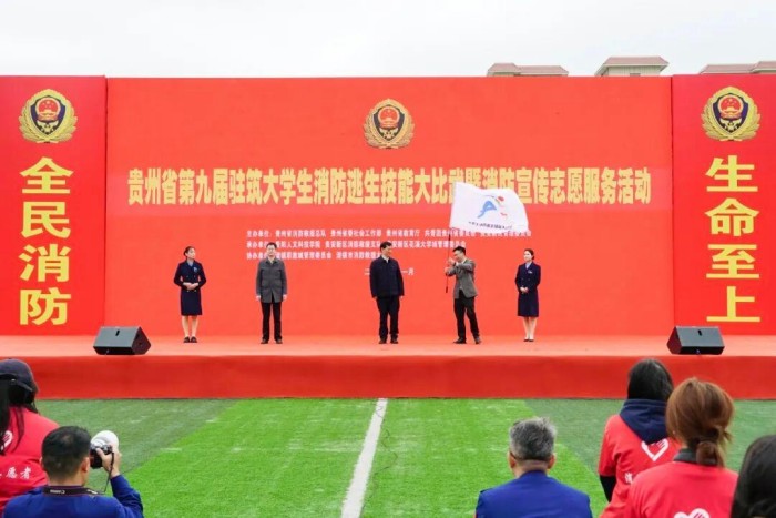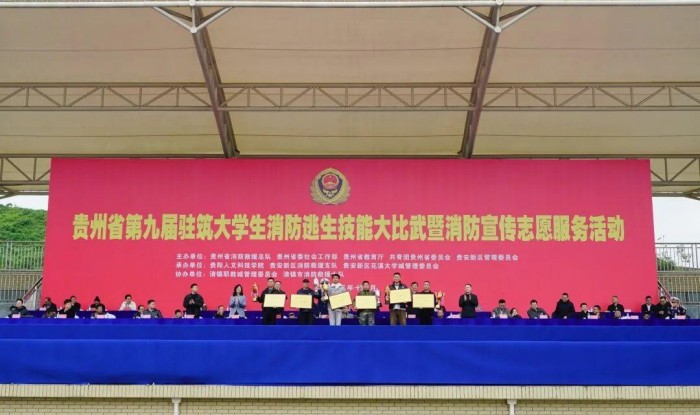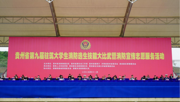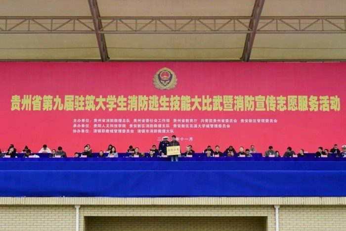 为提升大学生消防逃生技能,强化消防安全意识。11月11日,由贵州省消防救援总队、贵州省委社会工作部、贵州省教育厅、共青团贵州省委员会、贵安新区管理委员会主办,贵阳人文科技学院、贵安新区消防救援支队、贵安新区花溪大学城管理委员会承办,清镇职教城管理委员会、清镇市消防救援大队协办的“贵州省第九届驻筑大学生消防逃生技能大比武暨消防宣传志愿服务活动”在贵阳人文科技学院大学城校区田径场举行。