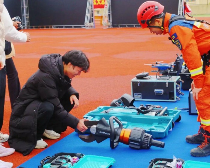 “消防安全日参观及体验消防装备器材”环节,设立“综合体验区”“消防展示区”等展区,同学们沉浸式体验消防逃生,近距离接触消防车、灭火机器人、防护装备等“消防利器”,在消防员的讲解和演示中,直观感受消防科技的力量,不少同学还亲自体验了装备操作,过足了“消防瘾”。