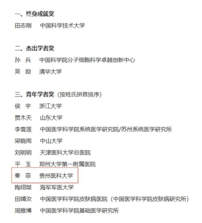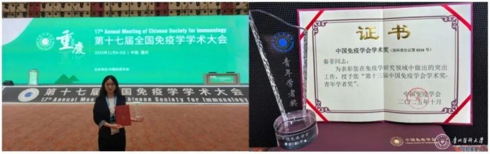 贵州医科大学教师秦菲荣获“第十三届中国免疫学会青年学者奖”