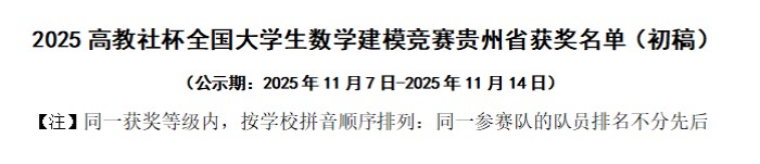 近日,由中国工业与应用数学学会联合主办的2025年“高教社杯”全国大学生数学建模竞赛成绩正式揭晓。贵阳信息科技学院共三支参赛队伍获奖,分别是公共教学部惠芸老师指导的胡嵩凌、龙一、陈港三位同学组成的队伍,荣获贵州赛区二等奖;公共教学部王孟孟老师指导的吴江灿、吴琼、黄贵琴三名同学组成队伍,荣获贵州赛区三等奖;智能工程学院张宁老师指导的陈蝶、严琴、车方鑫三名同学组成的队伍,荣获贵州赛区三等奖。