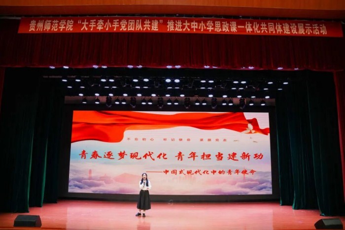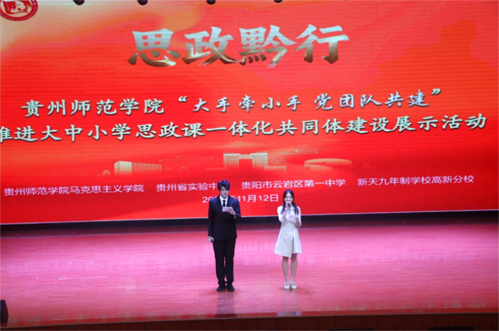 为深入学习贯彻习近平总书记关于思政课建设的重要指示精神,落实贵州省委书记徐麟在学校调研时对大中小学思政课一体化建设的工作要求,11月12日,贵州师范学院“大手牵小手 党团队共建”推进大中小学思政课一体化共同体建设展示活动在逸夫楼演播厅成功举行。