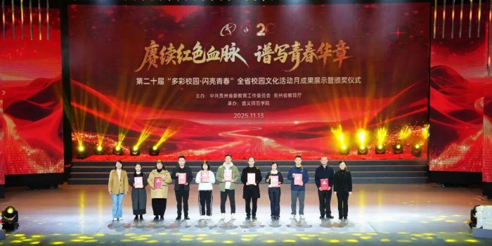 近日,由中共贵州省委教育工委、贵州省教育厅主办的第二十届“多彩校园·闪亮青春”全省校园文化活动月成果展示暨颁奖仪式在遵义师范学院举行。贵州工程应用技术学院党委副书记王春华应邀出席,并带领相关部门负责人参加活动。仪式汇聚了省委教育工委相关部门、各市(州)教育工委、各高校的领导及获奖师生代表。
