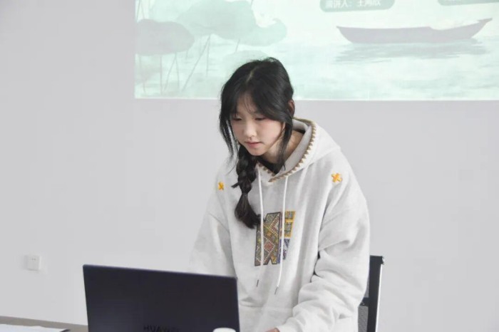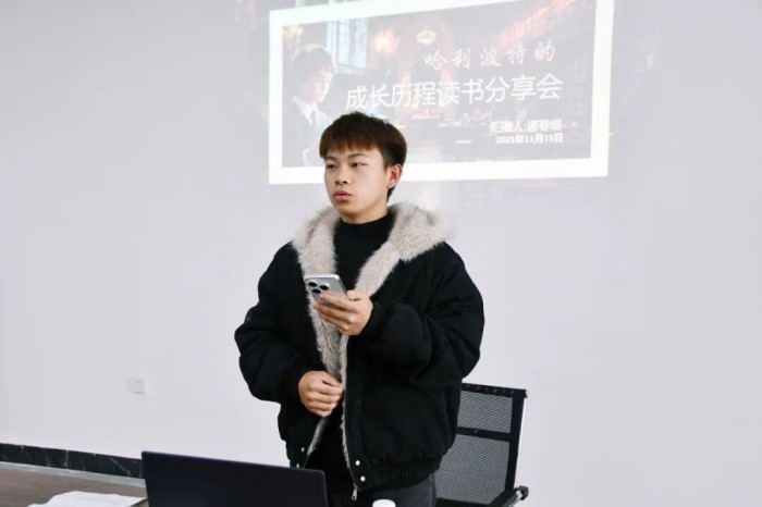 在读书分享环节,核心的读书分享环节,5 位同学依次登台,带来《小王子》《哈利波特》《我与地坛》《病隙随笔》《活着》的深度解读,让在场师生在文字共鸣中收获心灵启迪。