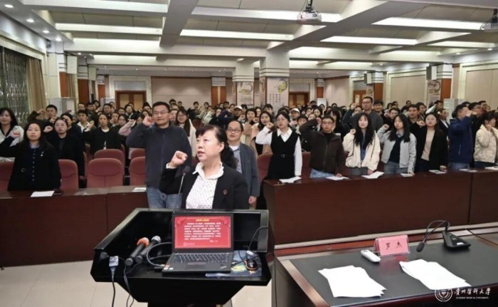 齐晓岚对新入职的教职工表示诚挚的祝贺和热烈的欢迎。她从八十七载薪火相传,贵医精神一脉相承;砥砺奋进成果丰硕,办学实力显著增强;教学科研比翼齐飞,服务社会贡献突出等方面介绍学校的发展历史、基本情况以及近年来在党的建设、人才培养、科研工作等方面取得的成绩,并对新入职的教职工提出三点要求:传承贵医精神,在坚定理想信念中践行初心使命;涵养贵医风骨,在秉持高尚品格中铸就师者楷模;勇担贵医使命,在提升育人能力中服务发展大局。希望全体新入职教职工以“愿教、勤教、乐教、善教、优教”共勉,在建设特色鲜明的百年医科大学新征程上书写人生精彩华章。
