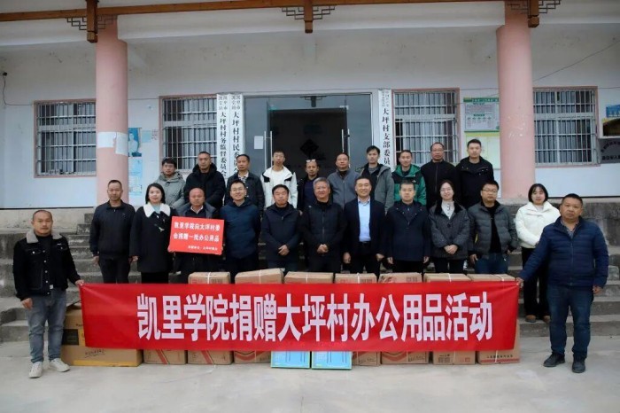最后,学校向大坪村捐赠办公物资。