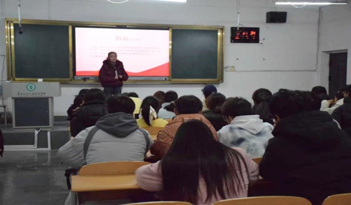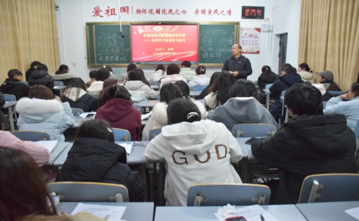培训第一讲,经济与管理学院党总支副书记唐纲以“扎根贵州大地,绘就青春答卷”为主题开展专题授课。他紧扣党的二十届四中全会精神,结合经管学科特色以及青年成长路径,从“了解贵州”“了解需求”“扎根贵州”“练好本领”四大维度展开讲解,分别以”立足省情,把握生态与发展双重命题、锚定痛点,兼顾生态保护民生期盼、因地制宜,探索本土化治理与发展路径、赋能成长,提升服务地方的综合能力”来引导学生,明确发展方向。