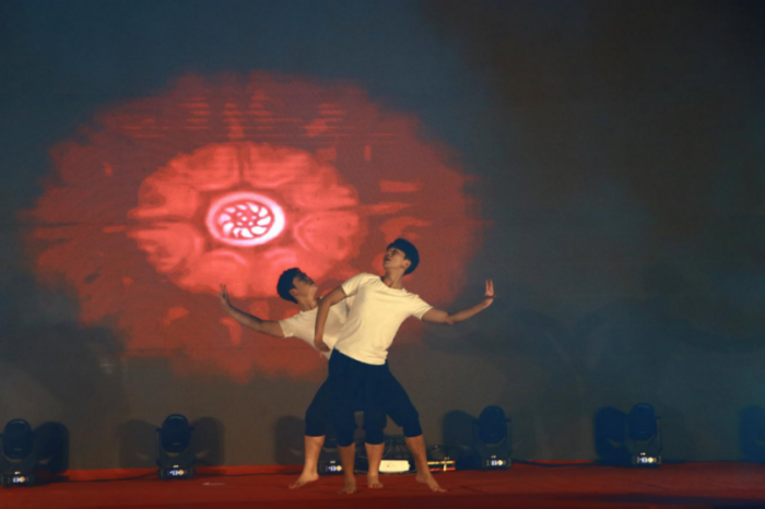 青春抱负与家国情怀共振。《向往》唱响未来期盼,舞蹈《山顶》与歌曲《在那山顶上》双线诠释攀登坚守;《破浪》激昂澎湃,“请党放心,强国有我”的誓言振聋发聩;《月亮照山川》与压轴之作《如愿》串联个人情感与家国记忆,旋律饱含深情。全体师生以大合唱《我和我的祖国》将氛围推向顶点,为这场艺术盛宴画上圆满句点。