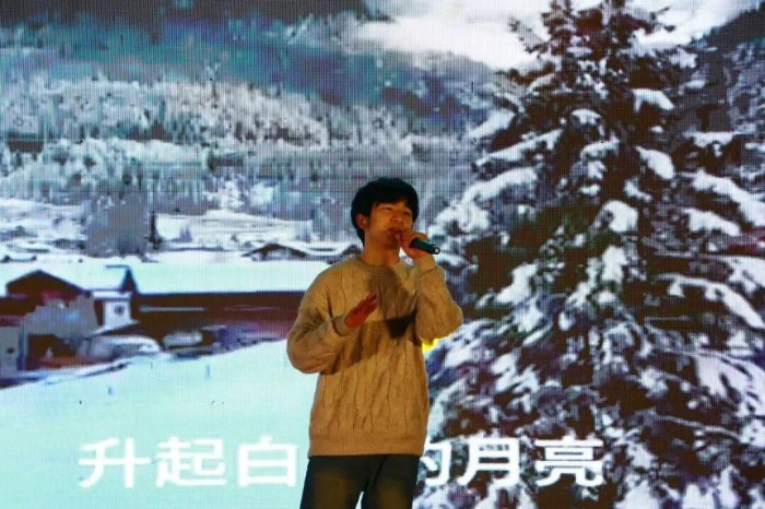 民谣吉他社以《我们的时光》《不能说的秘密》拉开序幕,热情旋律瞬间点燃全场;《若月亮没来》温柔拂面,《成都》铺展校园记忆,《你不知道的事》深情叩心,九分钟歌曲联唱串联流行与经典,引发全场跟唱共鸣;《贝加尔湖畔》空灵悠远,《大山》以质朴歌声诉说对家乡眷恋与成长坚韧。舞台之上多元文化与艺术创新交织。云南舞蹈《崴韵生花》热情奔放,傣族舞《傣·赤足逐光》灵秀神秘,《路过人间》满含思辨,尽显学子艺术张力;《敕勒歌》吟尽草原辽阔,《飞歌代代传》以歌伴舞传承民族薪火,蒙古舞《篝火》引领月下欢腾,独唱《流浪记》道尽成长沧桑与执着。