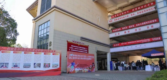 11月26日,由贵阳信息科技学院联合贵阳市经开区人力资源和社会保障局、贵阳经济技术开发区党工委组织人事部共同举办的“爽爽贵阳・活力经开”贵阳经济技术开发区2025年人力资源市场高校毕业生就业服务周贵阳信息科技学院专场招聘会,在学校B栋教学楼举行。省教育厅(省委教育工委)民办高校党组织书记、学校党委书记邓维实高度重视就业动态,第一时间深入招聘现场,靠前指挥、精准服务,将对贵科学子的关怀与期许融入就业服务全过程,推动招聘会实效落地。