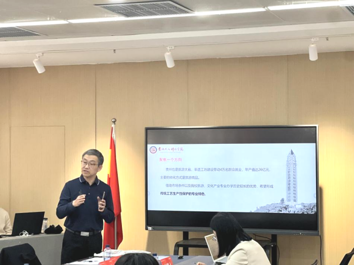 专题发言中,金颖若教授介绍了贵阳人文科技学院非遗专业建设情况,该专业联动相关专业形成的“文化旅游+乡村振兴”专业集群,是学校重点发展方向及校级重点建设学科。专业建设突出学科融合、智慧化转型、创新创业和全面课程思政,争取在传统工艺生产性保护方向上形成特色。他强调,贵州是非遗资源大省,非遗赖以生存的生产生活方式保存较为完整,为专业集群与学科建设提供了得天独厚的条件。