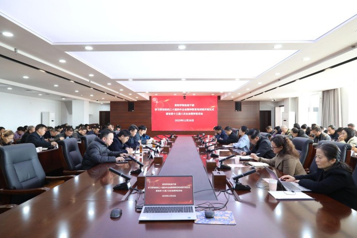 11月26日,学校处级干部学习贯彻党的二十届四中全会精神教育培训班开班式暨省委十三届八次全会精神宣讲会在学校九思楼八楼会议室举行。党委书记黄营出席并作专题宣讲,党委副书记马力主持会议,在家校领导和副处级以上干部参加。