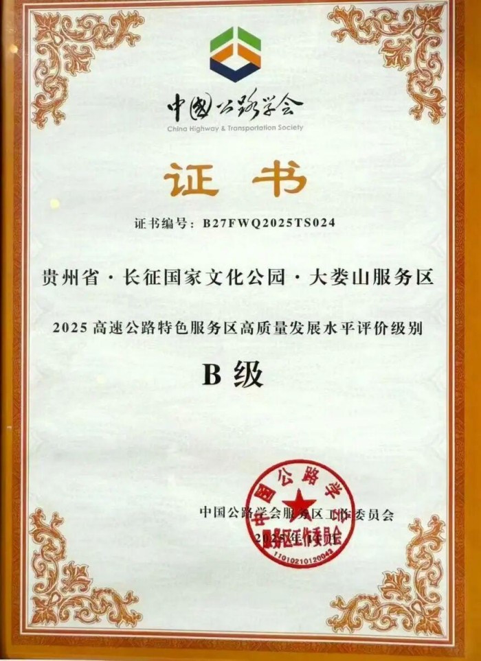 此次大娄山服务区获评全国B级特色服务区,既是对其坚持文化引领、推动交旅融合发展路径的肯定,也是贵州交通职业大学应用型人才培养与产教融合模式成效的具体体现。学校将持续深化与贵州高速集团的合作,依托大娄山服务区这一平台,进一步提升人才培养质量与社会服务能力,为贵州交通运输与旅游产业高质量发展注入新动能。