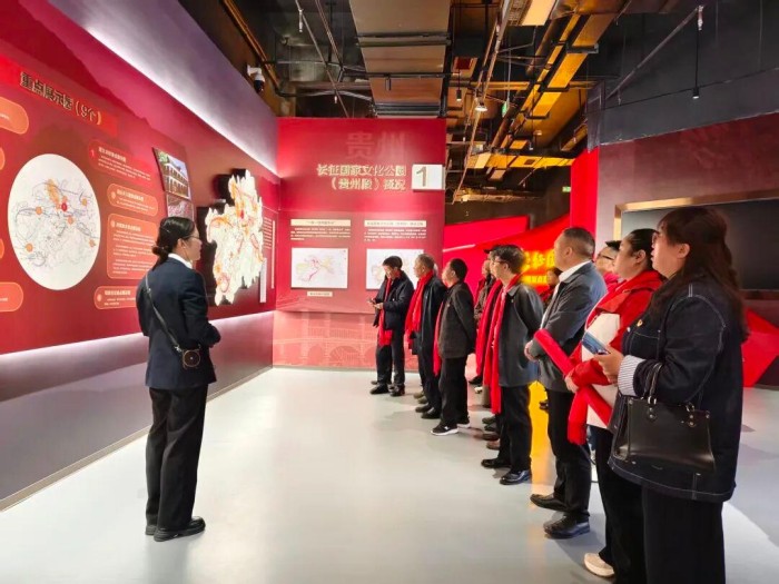 在运营实践中,校企协同打造了集实习实训、成果转化与社会服务于一体的产学研平台。该平台作为旅游管理、艺术设计等专业学生的长期实习基地,有效实现了课程内容与岗位实践的有机衔接。由贵州交通职业大学校办企业贵州智途文旅社负责“长征国家文化公园之窗”展馆与“黔彩”文创店的运营,每年安排学生在服务区开展顶岗实习,承担讲解接待、运营管理及文创推广等工作,全面锤炼学生职业能力。自运营以来,服务区已累计接待参观学习活动300余场,服务观众约34万人次。