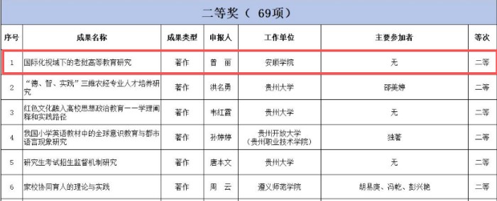 近日,2025 年贵州省教育科学研究优秀成果奖拟获奖名单正式公示,安顺学院曾丽校长的研究著作《国际化视域下的老挝高等教育研究》,凭借对老挝高等教育体系的系统分析及对贵州对外开放的实践指导价值,荣获二等奖。该成果不仅在学术研究领域获得认可,更通过深度转化形成政策提案,成为推动贵州省与东南亚国家开展教育、科技、文化旅游等方面深度合作的重要智库支撑。