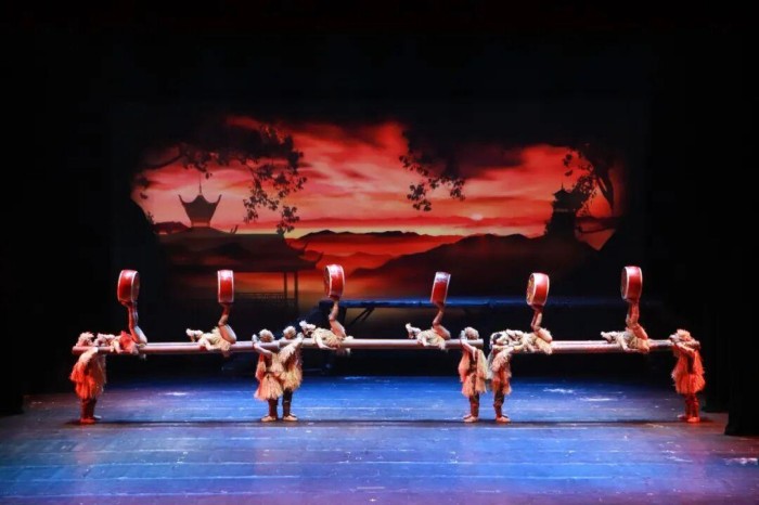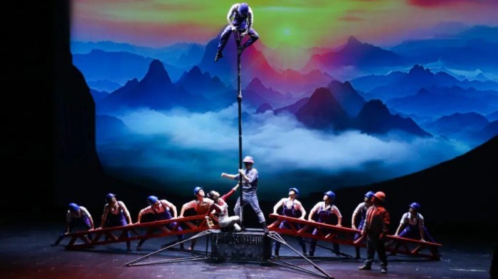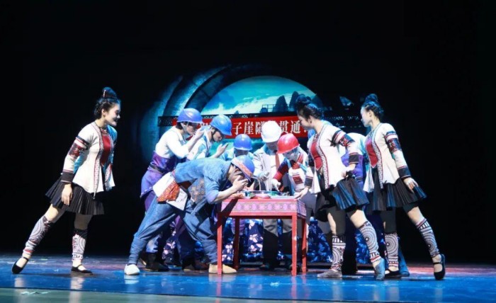 全剧共分为七幕,生动讲述了西部少数民族乡亲们在党的领导下开山修路、决战脱贫攻坚战的壮阔历程。舞台上,“空翻”“蹬鼓”“顶人”“弹球”等高难度杂技绝活轮番上演,演员们精准利落的动作令观众目不暇接,手心冒汗;同时,剧目还巧妙融入了苗族银饰、侗族舞蹈、土家风俗等贵州独特的民族文化元素,让杂技艺术与地域特色相得益彰,绽放出独特的文化魅力。