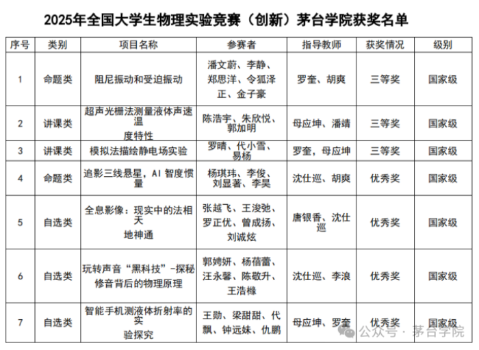 茅台学院学子在2025年全国大学生物理实验竞赛(创新)中再创佳绩