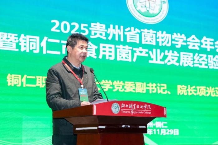 11月29日至30日,由贵州省农业农村厅、贵州省教育厅、贵州省科学技术协会指导,贵州省菌物学会、铜仁职业技术大学、贵州省食用菌产业技术体系联合主办的2025年贵州省菌物学会年会在铜仁职业技术大学成功举行。来自全省高校科研院所、行业企业、政府部门及食用菌产业技术体系的200余名专家学者齐聚梵净山下,共话菌物科学前沿进展与产业发展趋势。