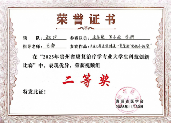 此次佳绩是铜仁职业技术大学康复治疗学专业“以赛促学、以赛促教”培养模式的生动体现。未来,学校将持续支持学生参与高水平学科竞赛,进一步激发创新活力,为培养高素质康复医学人才、推动区域康复事业发展贡献力量。