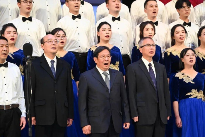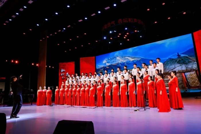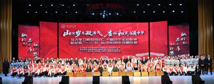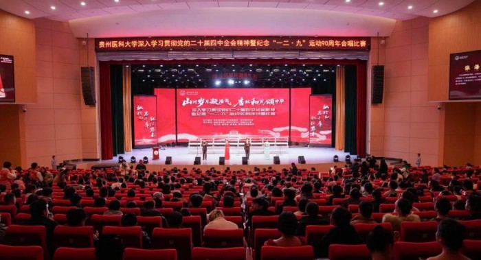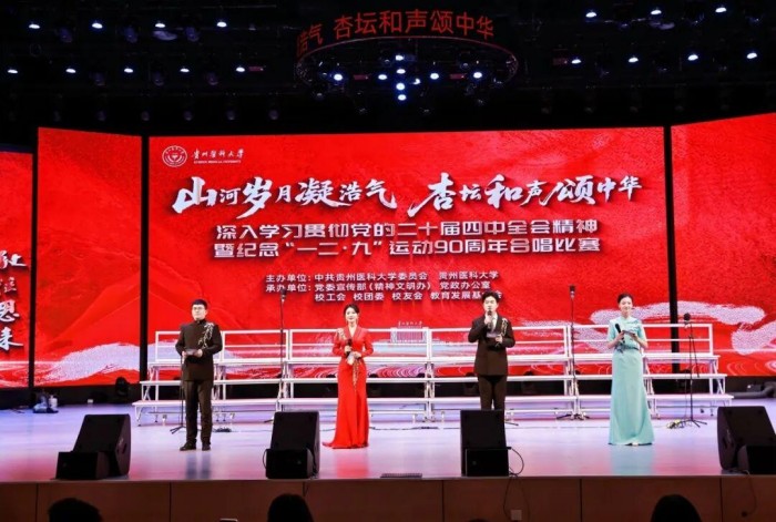 12月5日下午,贵州医科大学在云漫湖校区大礼堂隆重举办“山河岁月凝浩气 杏坛和声颂中华”合唱比赛。学校全体党政领导班子成员出席,来自校外的权威专家作为评委为比赛的专业性与公平性保驾护航,千余名教职医护员工生共同见证了这场艺术与精神的盛宴。