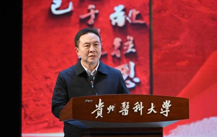 校党委书记汤磊在致辞中指出,本次活动是深入学习贯彻党的二十届四中全会及中共贵州省委十三届八次全会精神,纪念“一二·九”运动90周年的重要实践,旨在通过红歌传唱凝聚师生力量,以艺术形式诠释“健康所系、性命相托”的医者使命。他强调,合唱不仅是声音的交融,更是精神的共鸣,希望通过比赛进一步激发师生爱国情怀与奋斗精神,为学校“十四五”收官与“十五五”开局注入文化动能。