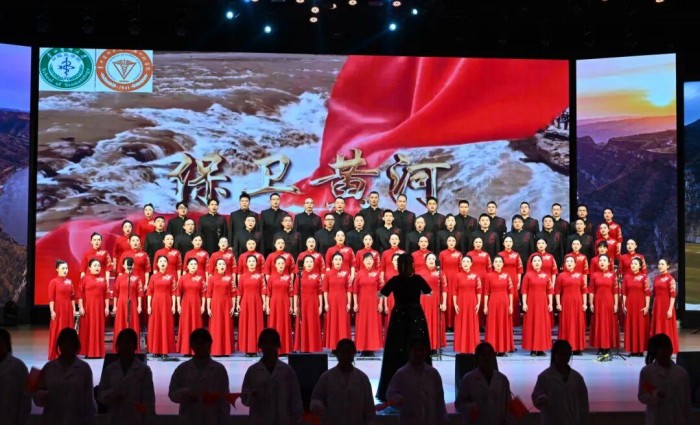 从经典红歌到时代新曲,比赛在多元的编排中彰显艺术创造力,铿锵旋律传递深沉家国情怀。舞台之上,各参赛队伍精神抖擞、意气轩昂,以嘹亮歌声传递赤诚初心:《保卫黄河》《四渡赤水出奇兵》气势磅礴,复刻革命岁月的热血担当;《不忘初心》《我和我的祖国》《灯火里的中国》温情满溢,诉说对家国的赤诚眷恋;《奉献》《如愿》《新的天地》铿锵有力,彰显贵医人扎根新时代、奋进新征程的医者担当……离退休处党总支作为特邀表演嘉宾,以《南泥湾》《彩虹》两首合唱曲目拉开赛事序幕,引领全场共忆艰苦奋斗的峥嵘岁月,颂扬美好新时代。