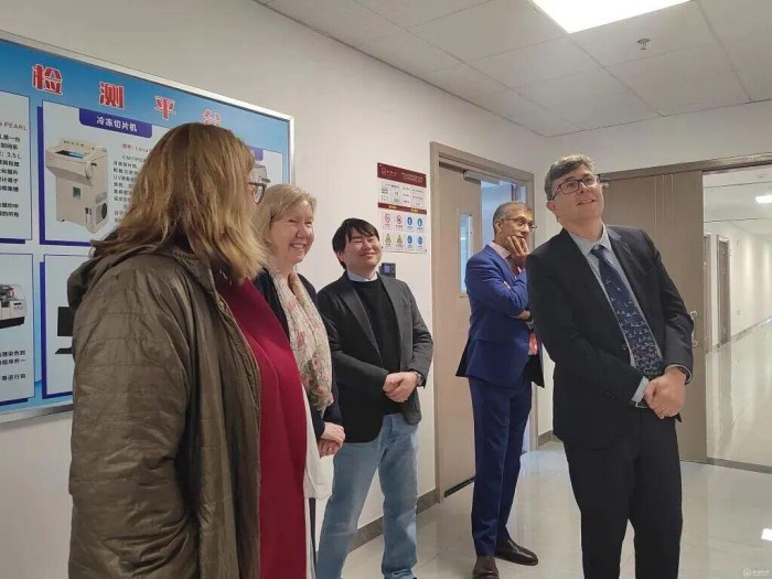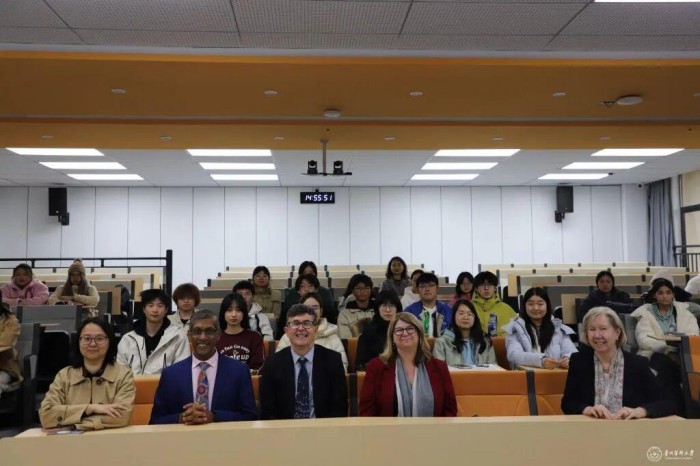 座谈结束后,昆士兰大学代表团实地走访生物工程学院(健康医药产业学院)、公共卫生与健康学院,考察教学实验室、科研平台及育人环境,深入了解学生学习实践条件。代表团还与2024级、2025级“中高计划”学生面对面交流,针对海外学习适应、专业知识衔接、学术规划等关切问题细致答疑,分享昆士兰大学课程设置、校园生活及科研资源,为学生赴澳学习搭建前置沟通桥梁,坚定其参与联合培养的信心。