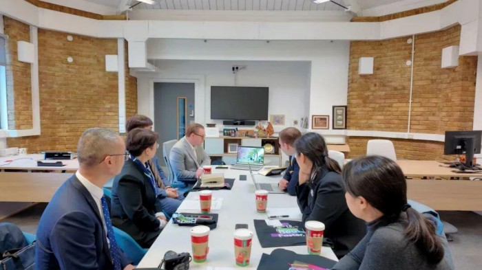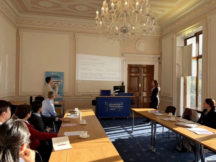 在英国期间,王蜀黔一行访问了赫特福德大学,该大学全球院校合作总监 Jon Driver及国际处负责人Dean Lee热情接待访问团一行并陪同参观校园。座谈会上,赫特福德大学表示未来将与我校紧密联系,开展师生交流、科研平台共建、联合硕博培养等合作,下一步将签署相关协议,务实开展工作。