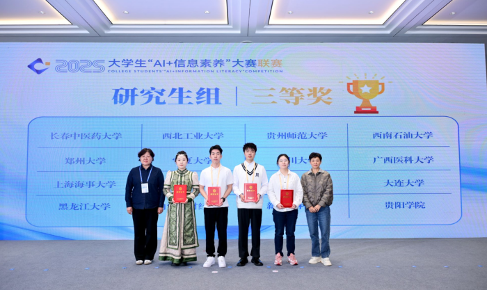 11月26日至28日,大学生“AI+信息素养”大赛全国联赛在成都举办,学校食品科学与工程学院刘雨薇、贾正红、周凤彩三名同学组成“捷足先登队”,斩获联赛研究生组三等奖,图书馆教师王兴东、丁凯获大赛优秀指导教师奖。