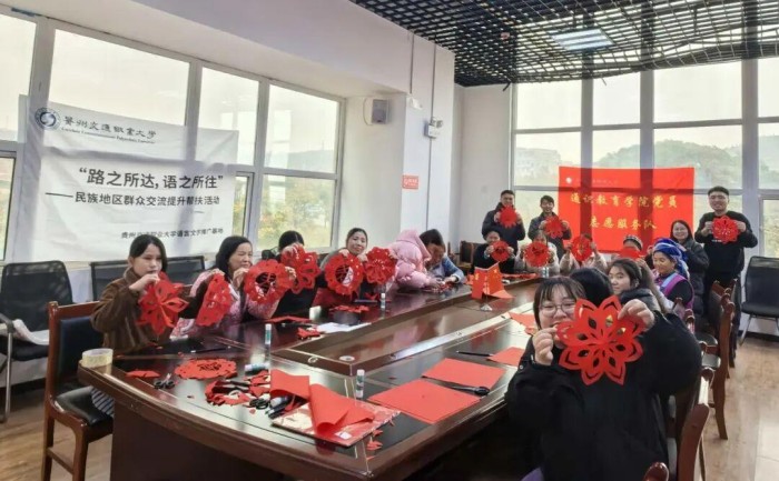 通识教育学院等四部门结合社区需求联合开展主题党日活动。总务处向社区执勤人员发放御寒衣物及流感防治药品,传递温暖关怀;图书馆根据居民阅读需求捐赠儿童、青少年读物,助力社区书屋建设;通识教育学院组织剪纸技艺教学、赠送体育用品、开展语言文字推广活动,并制作反映居民搬迁历程的专题视频,助力文化传承与社区治理;继续教育学院开展就业技能培训,着力提升居民就业能力。