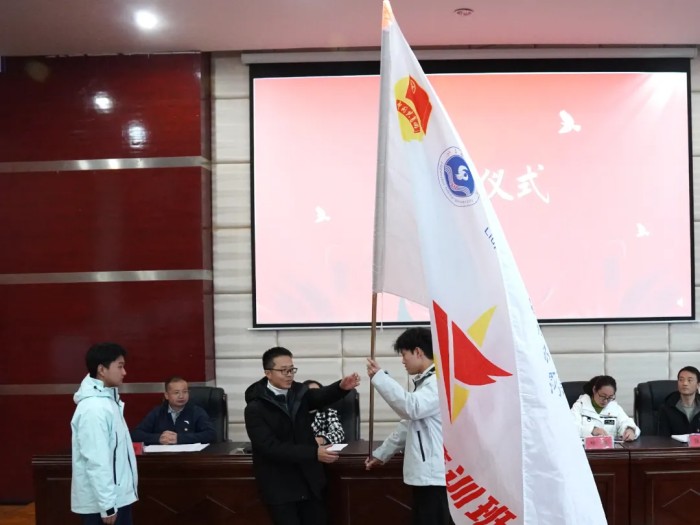 授旗环节,第十七期学员代表将象征着责任与使命的“青马工程”旗帜传递至第十八期学员代表手中。