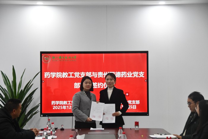 碧江高新区综合党委副书记杨文宣对本次党建联建活动给予充分肯定,强调要坚持党建引领、服务产业发展,推动校企合作向机制化、项目化、常态化迈进。药学院党总支书记郑大志在总结发言中指出,本次交流为双方搭建了深度合作平台,未来将持续推进党建与业务“双融双促”,形成更多实质性成果。会后,双方党支部共同签署了联建协议并合影留念。