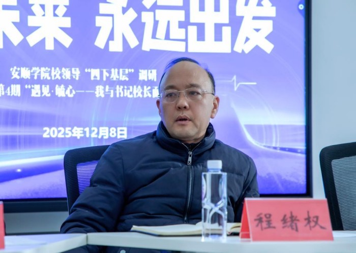 为畅通师生沟通渠道,精准对接学生需求,持续推动校园建设与教学优化,2025年12月8日,安顺学院在毓秀“一站式”学生社区服务中心召开了2025年第4期“遇见·毓心——我与书记校长面对面”座谈会。安顺学院党委书记程绪权,党委常委、副校长孙向阳,有关职能部门负责人,2025级部分新生代表共同参与。本次座谈会以“心向未来,永远出发”为主题,与会师生围绕学业发展、校园生活与服务保障等话题,展开了真诚、务实且深入的交流。