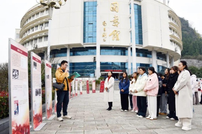 12月10日下午,铜仁职业技术大学图书馆、碧江区图书馆共同举办的“红旗漫卷西风——在近代文献中探寻长征的历史”主题图文展活动在图书馆广场举行,图书馆全体馆员及近百名师生代表到场观展,感悟长征精神的磅礴伟力。
