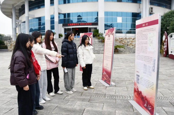 活动现场,数十块展板整齐陈列,一张张泛黄的老照片、一段段文字记载,串联起红军长征的伟大征程。从中央红军开始长征的到遵义会议的历史抉择,从红军战士爬雪山过草地的感人回忆,从“红旗漫卷西风”的豪迈诗篇到三军会师的胜利捷报,每一块展板、每一段文献记载都是鲜活的历史切片,共同拼贴出长征完整而厚重的历史图景。