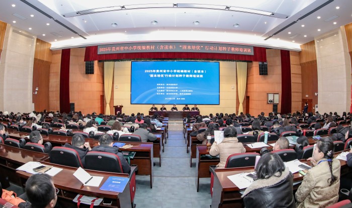为贯彻落实教育部教材局关于实施民族地区中小学国家统编教材(含读本)使用“固本培优”行动计划(2025-2027年),2025年12月17日-19日,由贵州师范大学、人民教育出版社主办,北京师范大学支持,贵州师范学院、贵州出版集团协办的“2025年贵州省中小学统编教材(含读本)‘固本培优’行动计划种子教师培训班”在贵州师范大学举行。