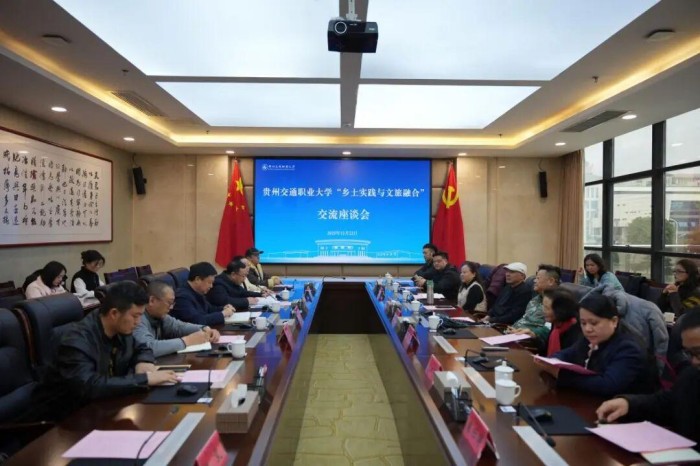 12月22日,贵州省教育厅关工委主任赵廷昌、副主任胡晓,贵州省教育厅原派驻洪江村第一书记马丽华,国家一级美术师李向明等专家学者到访贵州交通职业大学,围绕“乡土实践与文旅融合”主题展开座谈交流。校党委书记何兴发、党委副书记王昌林出席座谈会。