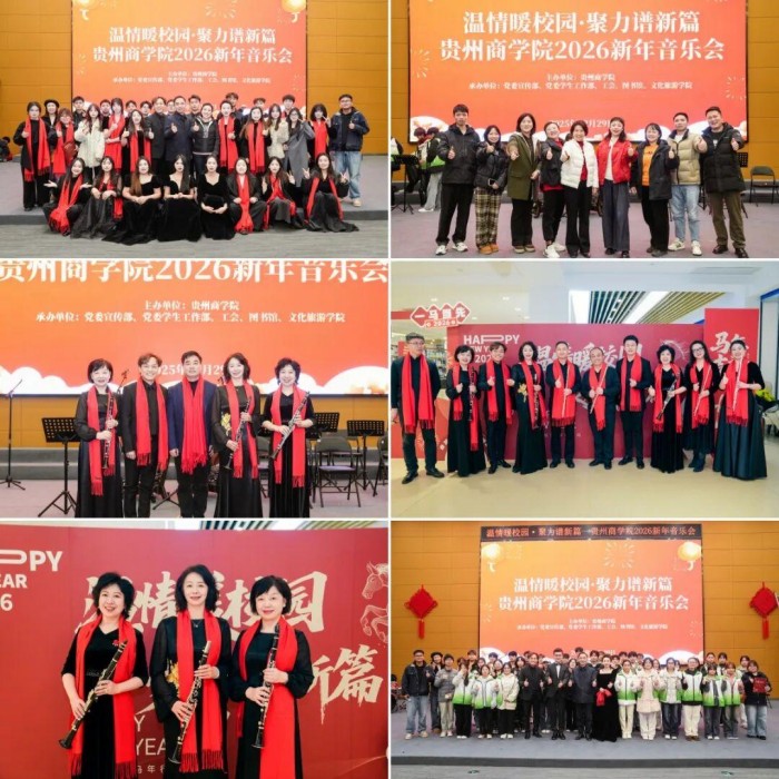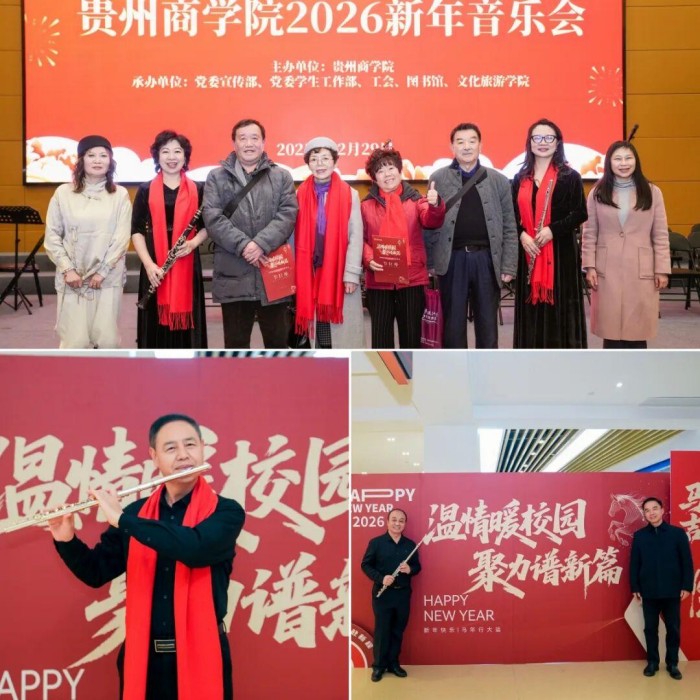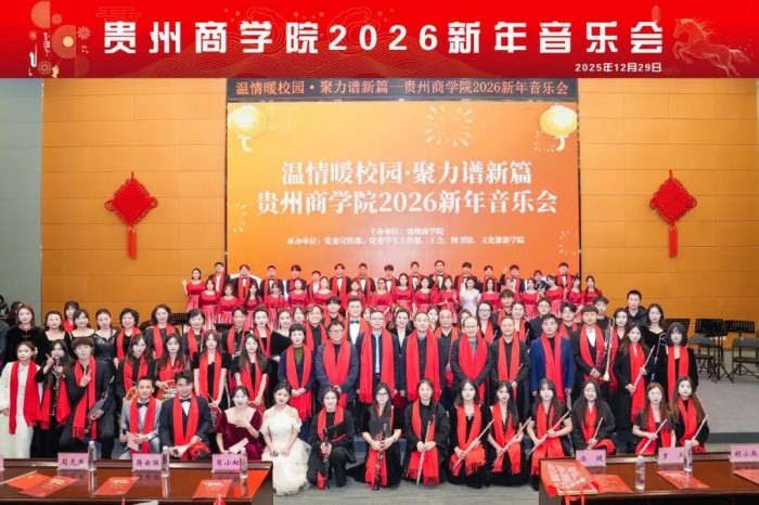 乐声袅袅,余韵悠悠。本次新年音乐会不仅是艺术的盛会,更是思想的洗礼与精神的凝聚。广大师生在音乐中感受温暖、汲取力量,进一步坚定投身学校高质量发展、助力申硕攻坚的信心与决心。新的一年,贵州商学院将持续深化“三全育人”综合改革,全面推进校园文化建设,激励全体师生以更加奋发有为的姿态,携手并进、勇毅前行,在建设特色鲜明的高水平应用型商科院校的新征程上谱写更加辉煌的篇章!