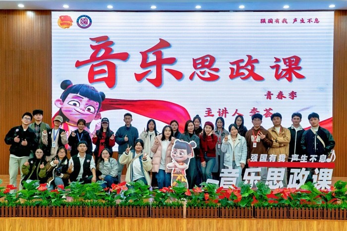 这场贯穿全年的思政教育创新实践,由校团委、体育与艺术学院、学生工作部(处)、马克思主义学院联合主办,校团委书记李荟四次登台授课,带领线上4000余名、线下2400余名师生在旋律中对话历史、在互动中坚定信念,完成了一场跨越四季的青年精神求索之旅。