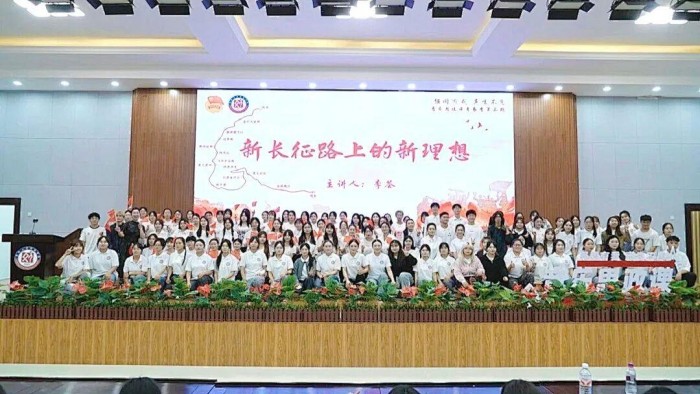 金秋十月的第三期课程以“新长征路上谈新理想”为主题,构建起“回望历史、立足当下、眺望未来”的三维育人视角。课堂上,传统红色歌曲与现代流行音乐碰撞,情景演绎与理论阐释交织,让新时代青年责任担当有了更鲜活地表达。将富强、民主、文明、和谐的国家愿景与青年担当紧密结合,让社会主义核心价值观成为新时代长征路上的精神旗帜。学子们围绕“新时代青年如何传承长征精神”展开热烈讨论,在音乐与情景的交融中,将个人理想融入国家发展大局,明确新时代青年使命方向。