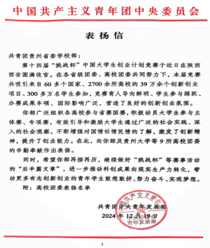 未来,铜仁职业技术大学团委将继续深入学习宣传贯彻党的二十届四中全会精神,以习近平新时代中国特色社会主义思想为引领,助力实施创新驱动发展战略,继续大力推进学生创新创业实践,持续提升青年学生创新创业能力,团结带领广大青年学生在科技创新的赛道上奋力奔跑,在服务学校高质量发展中展现新作为,作出新贡献。