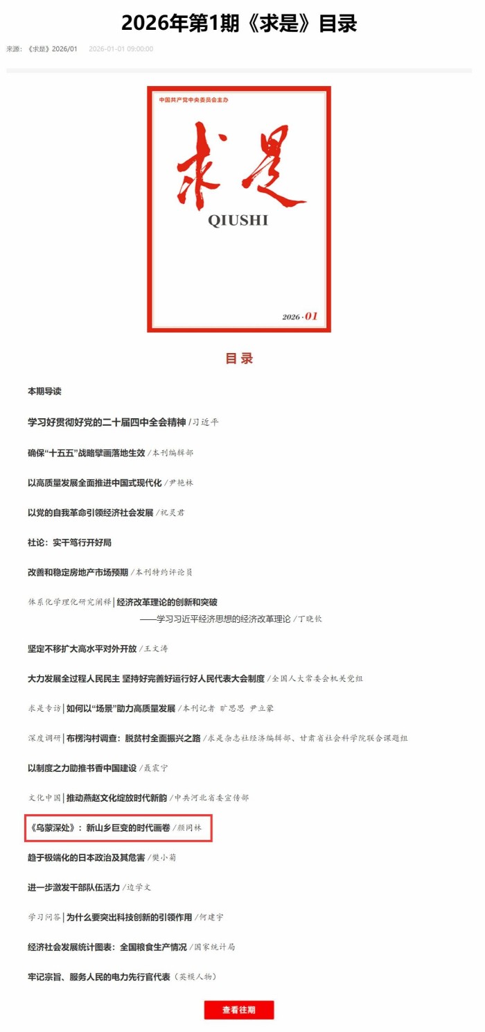 近日,贵州师范大学颜同林教授在《求是》杂志2026年第1期上发表理论文章——《〈乌蒙深处〉:新山乡巨变的时代画卷》,文章深入评析近期在中央电视台第一频道热播的乡村振兴题材电视剧《乌蒙深处》。